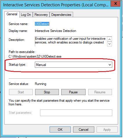 一:将Interactive Services Detection系统服务设置成自动运行,如果是应用是32位的,设置成手动启动也是可以的。